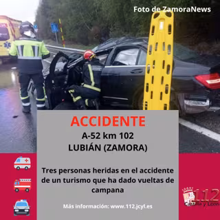 Tres heridos, incluido un bebé de cinco meses, en un accidente de tráfico en la A-52, sentido Galicia, en Lubián (Zamora), según datos del 112 Castilla y León recogidos por Europa Press.