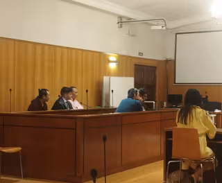 Los tres contendientes y sus letrados durante la vista de conformidad celebrada esta mañana en la Audiencia de Valladolid. - EUROPA PRESS