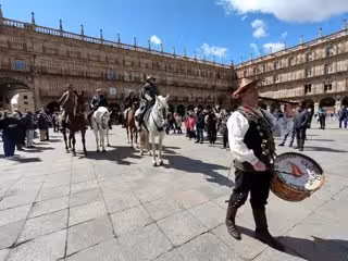 Tras hacer noche en la ciudad este jueves, los tres jinetes han visitado enclaves históricos de la localidad como el Puente Romano o la Universidad para llegar, pasadas las 13.15 horas, a la Plaza Mayor de Salamanca, acompañados por el folclorista salmantino Ángel Rufino de Haro 'El Mariquelo', donde han sido recibidos por la primer teniente de alcalde, Ana Suárez, y el concejal de Turismo, Fernando Castaño.