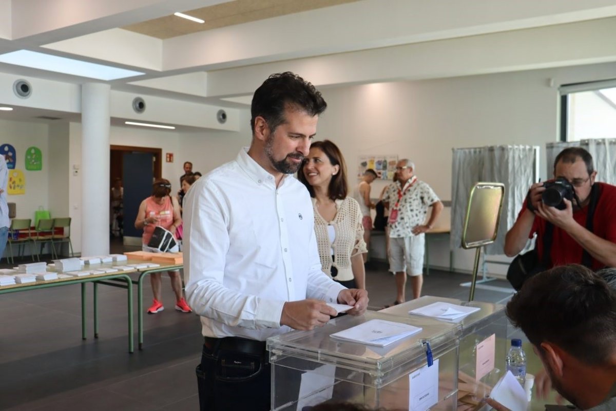 El secretario general del PSOE CyL, Luis Tudanca, ejerce su derecho a voto este 23J. - PSOE