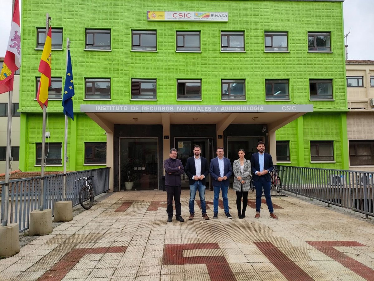 El Secretario General Del Pscyl, Luis Tudanca, Segundo Por La Izquierda, En Su Visita A La Sede Del Irnasa En Salamanca. - EUROPA PRESS