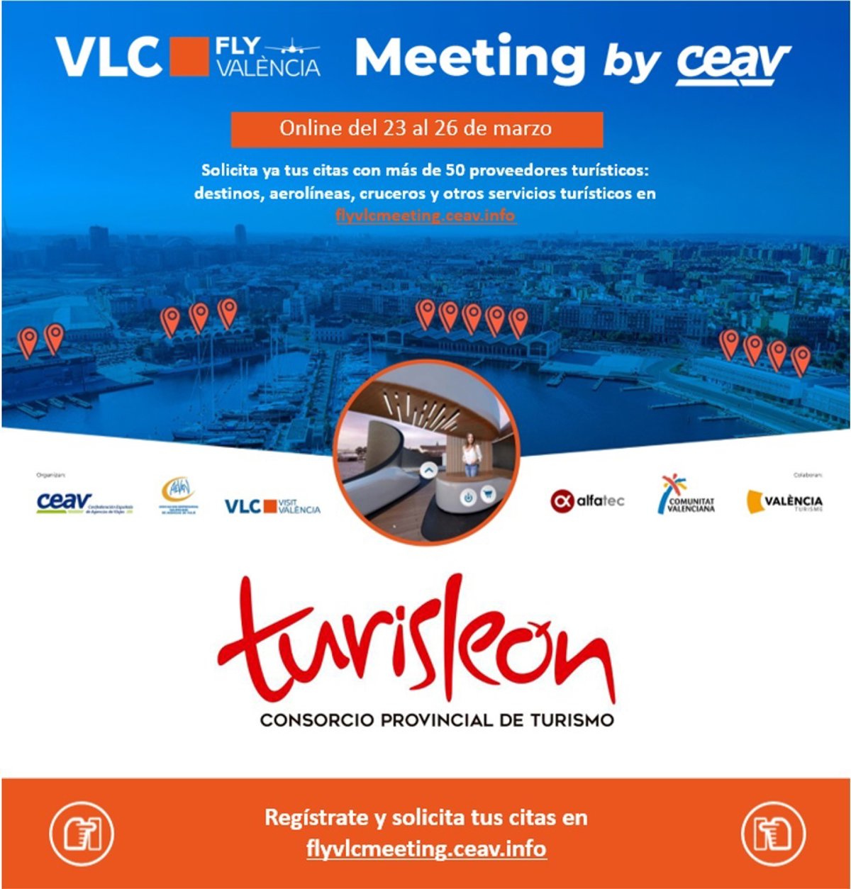 El Consorcio Provincial de Turismo, integrado por la Diputación de León y por el Ayuntamiento de León, participa en la VI edición del Fly Valencia Meeting, un encuentro que organiza la Confederación Española de Agencias de Viajes (CEAV) con Visit Valncia y que este año se adapta a las condiciones que impone la situación sanitaria por lo que se lleva a cabo de forma virtual con el objetivo de estimular la reactivación turística después del "complicado año" que ha vivido el sector.