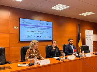 La Universidad Católica de Ávila (UCAV) ha presentado esta mañana en rueda de prensa la V Semana de la Economía Social, que tendrá lugar en Ávila del 4 al 14 de marzo, con el objetivo de dar a conocer y promover esta área dentro de la economía, que genera cerca de dos millones de empleos en España.