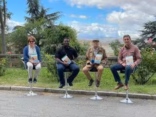 Presentación del libro de aves de Etiopía por parte de Begoña Tens, coautora del libro; Louis Diatta, padre Espiritano; Tomás Santamaría, profesor de la UCAV y coautor del libro; y Javier González, SEO birdlife y coautor del libro. - UCAV