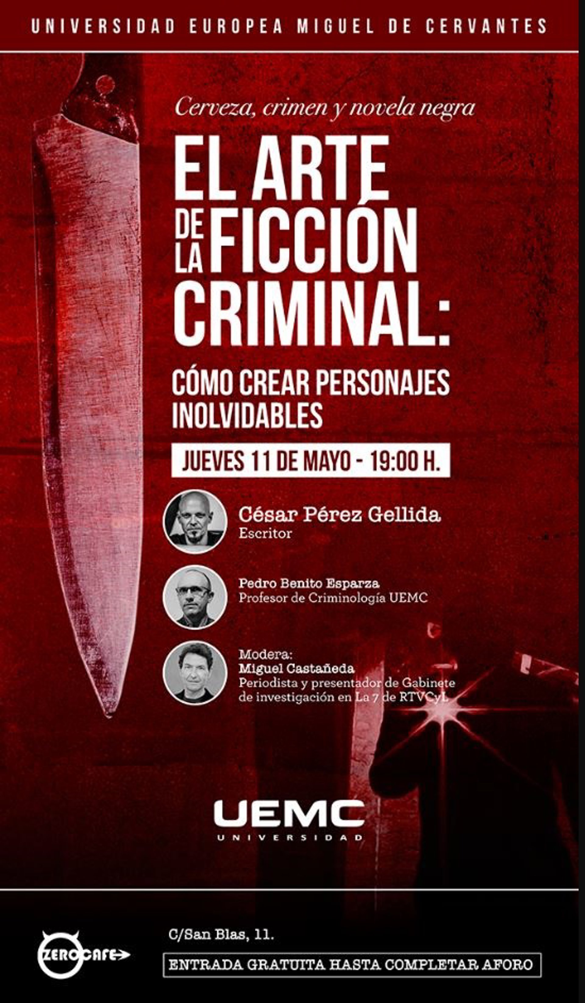 Este evento reunirá al escritor César Pérez Gellida y el profesor de Criminología de la UEMC y miembro de la Policía Nacional, Pedro Benito Esparza. Ambos compartirán su experiencia y conocimientos sobre la construcción y análisis de personajes criminales realistas en la ficción y sus similitudes con la realidad.