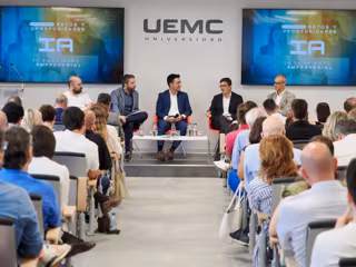La jornada incluyó una mesa redonda sobre experiencias reales de implantación de la IA, moderada por Juan Vicente García Manjón, profesor de Innovación en la UEMC, en la que participaron José Luis Marín de la Iglesia (director de Estrategia de Digitalización, Datos e IA en Madison), José Carlos Jiménez Sánchez (cofundador y socio de Inusual), Adrián Rodríguez Serrano (Director de Servicios de AUVASA) y Óscar Javier Prieto Izquierdo (director del Departamento de Enseñanzas Técnicas en la UEMC).