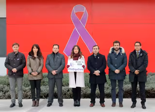 La UEMC, con motivo del Día Internacional de la Eliminación de la Violencia contra la Mujer, ha dispuesto un gran lazo morado sobre la fachada del Edificio 02, frente al cual el equipo rectoral ha dejado patente su rechazo a la Violencia de Género.