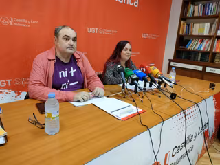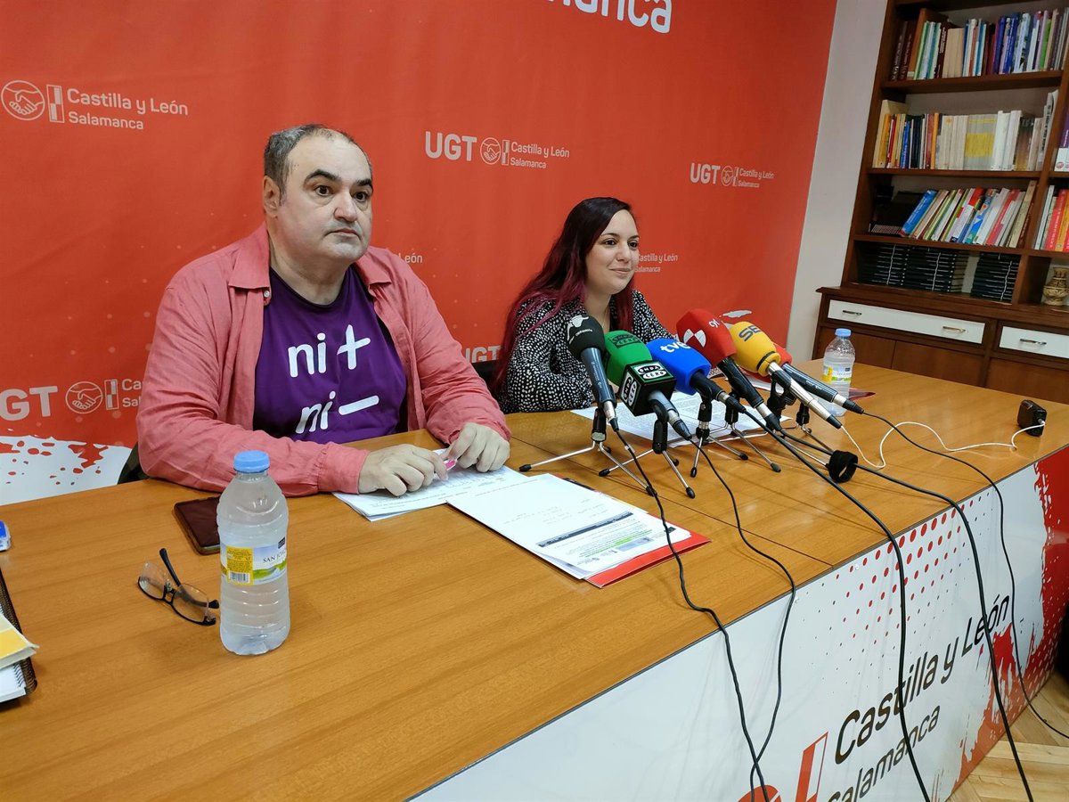 El secretario general de UGT Servicios Públicos CyL, Tomás Pérez, y la secretaria provincial de Enseñanza de UGT Salamanca, Brenda Melero - EUROPA PRESS