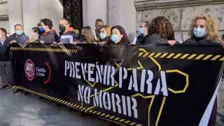 Para poner el poco el foco en esta en esta problemática y solidarizarse también con las familias de los fallecidos, los asistentes, que han desplegado una pancarta que rezaba 'Prevenir para no morir', han dedicado, previa lectura de un manifiesto, un minuto de silencio a los trabajadores fallecidos.
