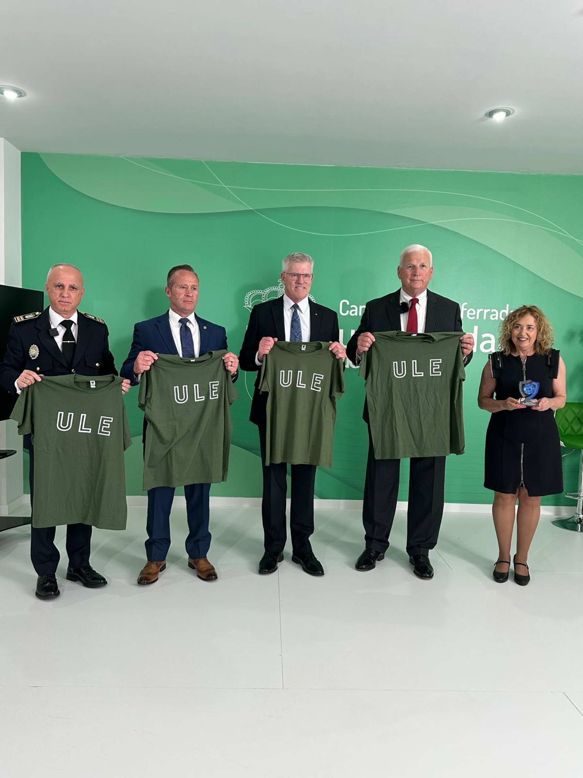 Representantes de la Universidad de León, la Association International of Chiefs of Police y la Policía Municipal de Ponferrada durante la reunión mantenida en la que se ha firmado un acuerdo de colaboración - ULE