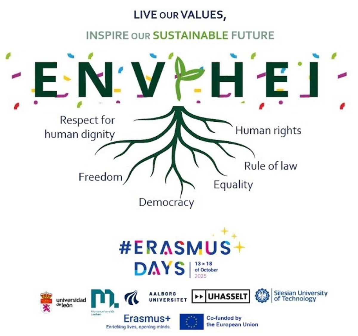 Con el lema 'Roots of Values, Seeds of Sustainability', la actividad tiene como objetivo destacar la conexión entre los valores fundamentales de la Unión Europea --respeto por la dignidad humana, libertad, democracia, igualdad, Estado de derecho y derechos humanos -- y las competencias verdes promovidas por el marco europeo GreenComp, que ENVIHEI integra en la educación superior.