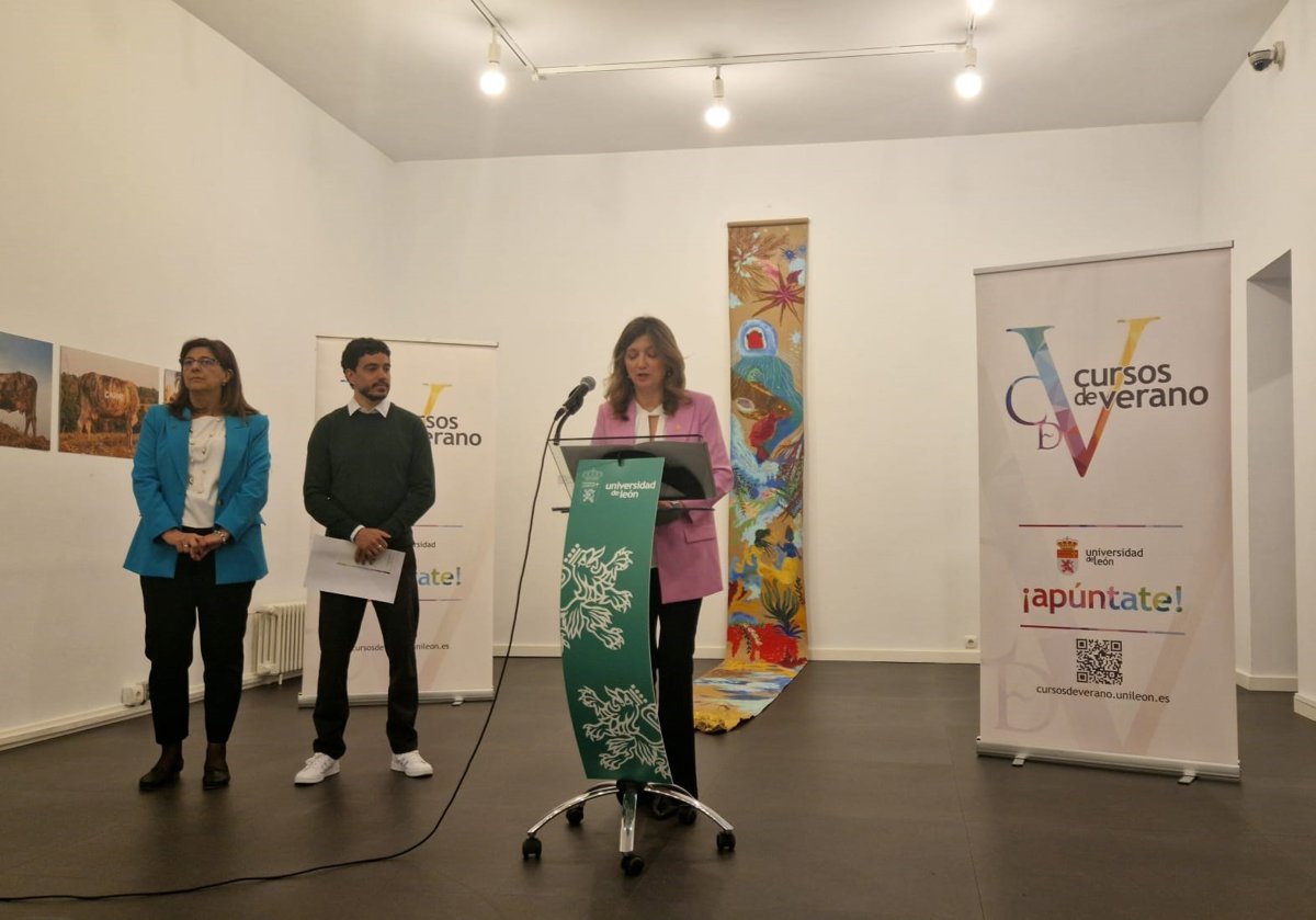 La rectora de la Universidad de León (ULE), Nuria González, ha presentado este martes los Cursos de Verano, que amplían este año su oferta con 38 propuestas formativas en 13 municipios de la provincia y con los que se "refuerza" el compromiso de la entidad académica con el medio rural. Además, en esta edición se estrena una plataforma de gestión "más intuitiva y moderna".