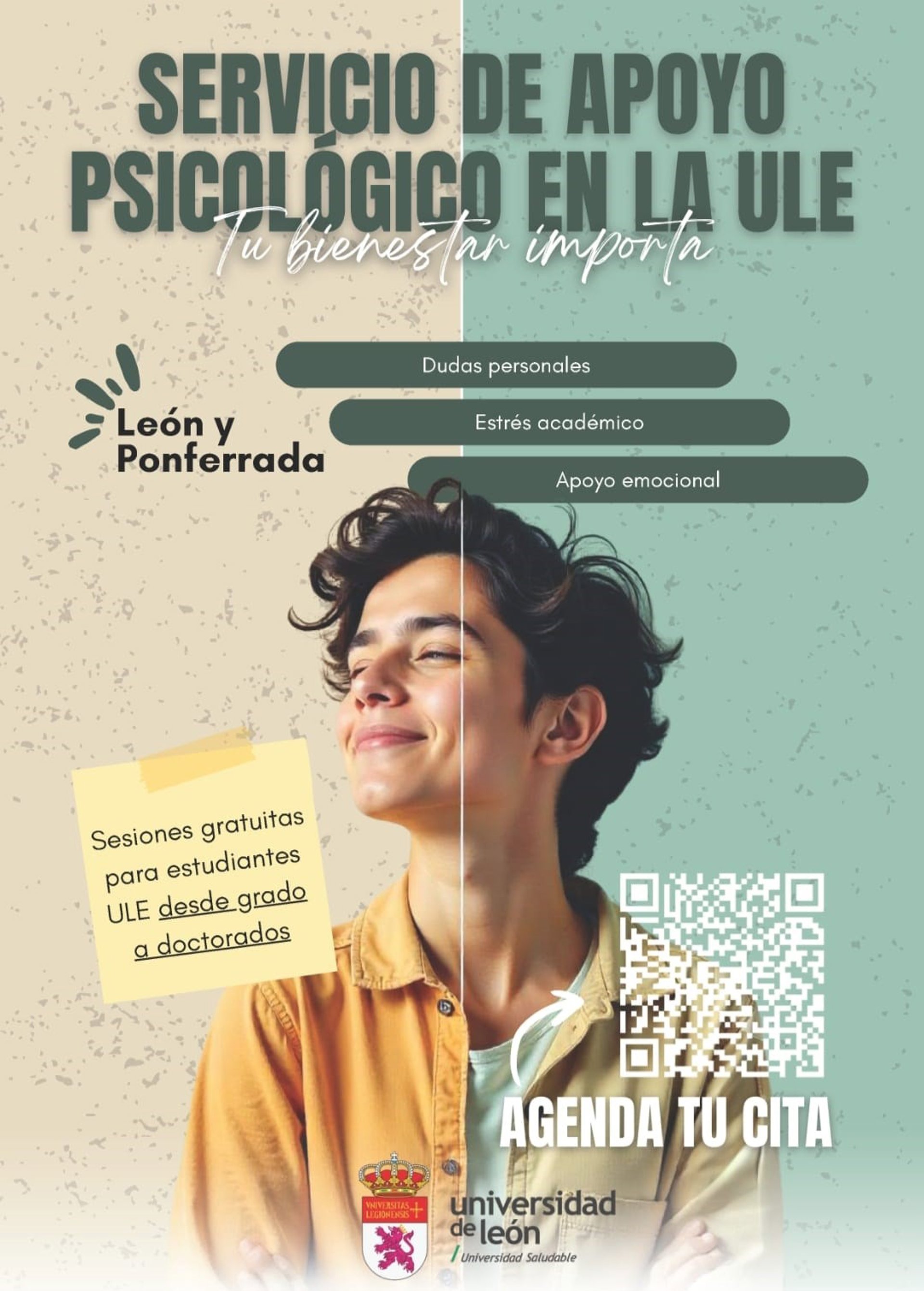 La Universidad de León (ULE), consciente de la importancia de cuidar la salud mental de su comunidad universitaria, ha reforzado el Programa de Apoyo Psicológico situándolo en el "epicentro" de su estrategia de promoción de la salud y consolidándose como una pieza "clave" para acompañar a los estudiantes en momentos de dificultad emocional, para lo cual ha incrementado de dos a cuatro el equipo de psicólogos especializados.