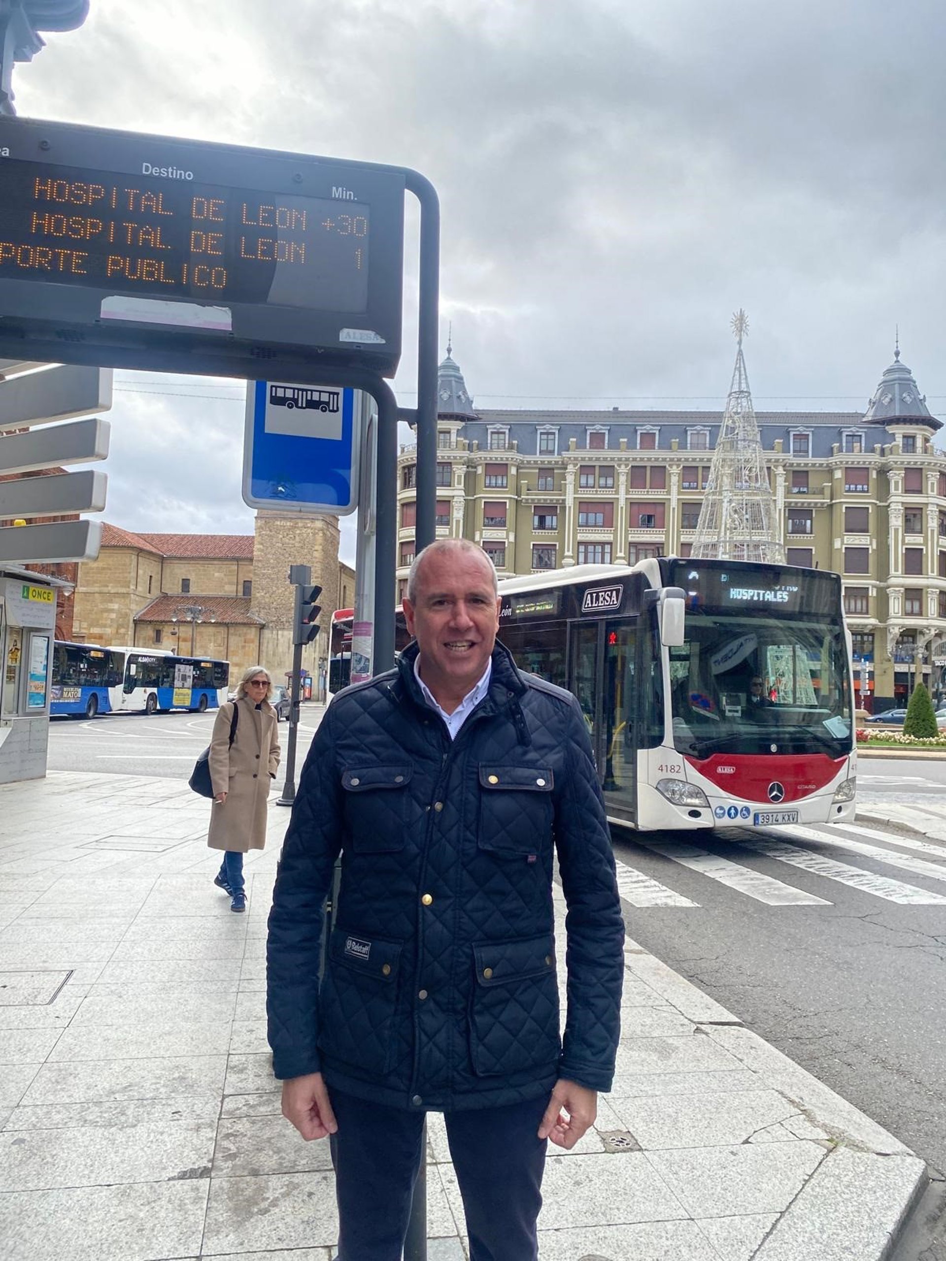 El concejal de UPL, Enrique Valdeón, posa frente a la parada de autobuses de Santo Domingo. - UPL