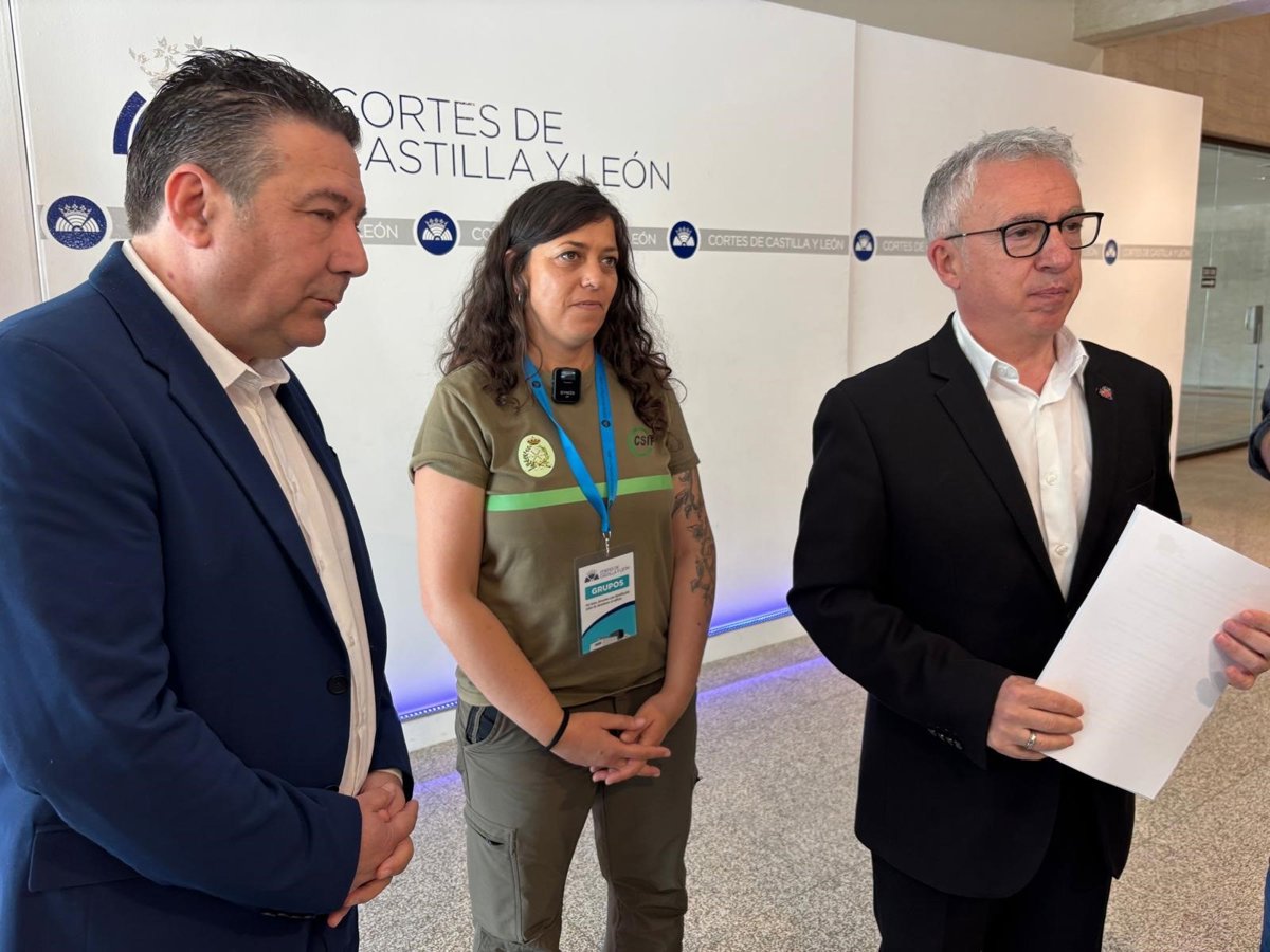 La iniciativa parlamentaria ha sido registrada este miércoles en el Parlamento por los procuradores Ángel Ceña, de Soria ¡Ya!, Luis Mariano Santos, de UPL, quienes han estado acompañados por la agente medioambiental y delegada de Medio Ambiente de CSIF, Sara Mateos, quien ha defendido la labor de este cuerpo de profesionales como "instrumento a través del cual la Administración garantiza a sus ciudadanos el derecho constitucional a un medio ambiente adecuado".