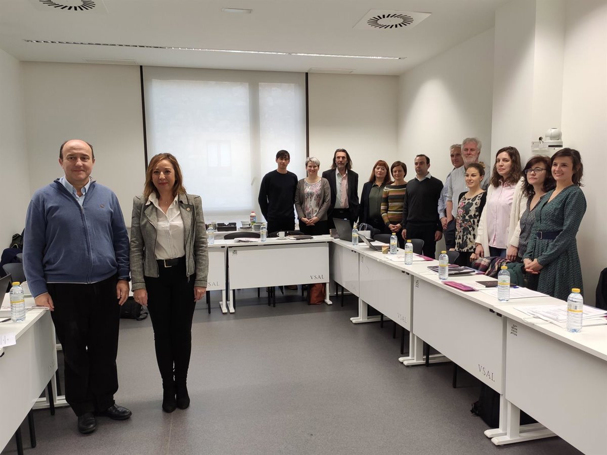 El investigador Hernández Rivas y la vicerrectora Susana Pérez, delante de la mesa, junto a participantes internacionales en el proyecto. - EUROPA PRESS