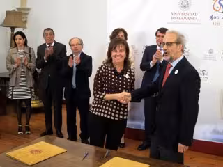 Para la cesión de uso de este inmueble, adquirido por el Gobierno en 2004 por ocho millones de euros, el rector de la USAL, Daniel Hernández, y la subsecretaria de Hacienda y Administraciones Públicas, Pilar Platero, han firmado el acta de afectación.