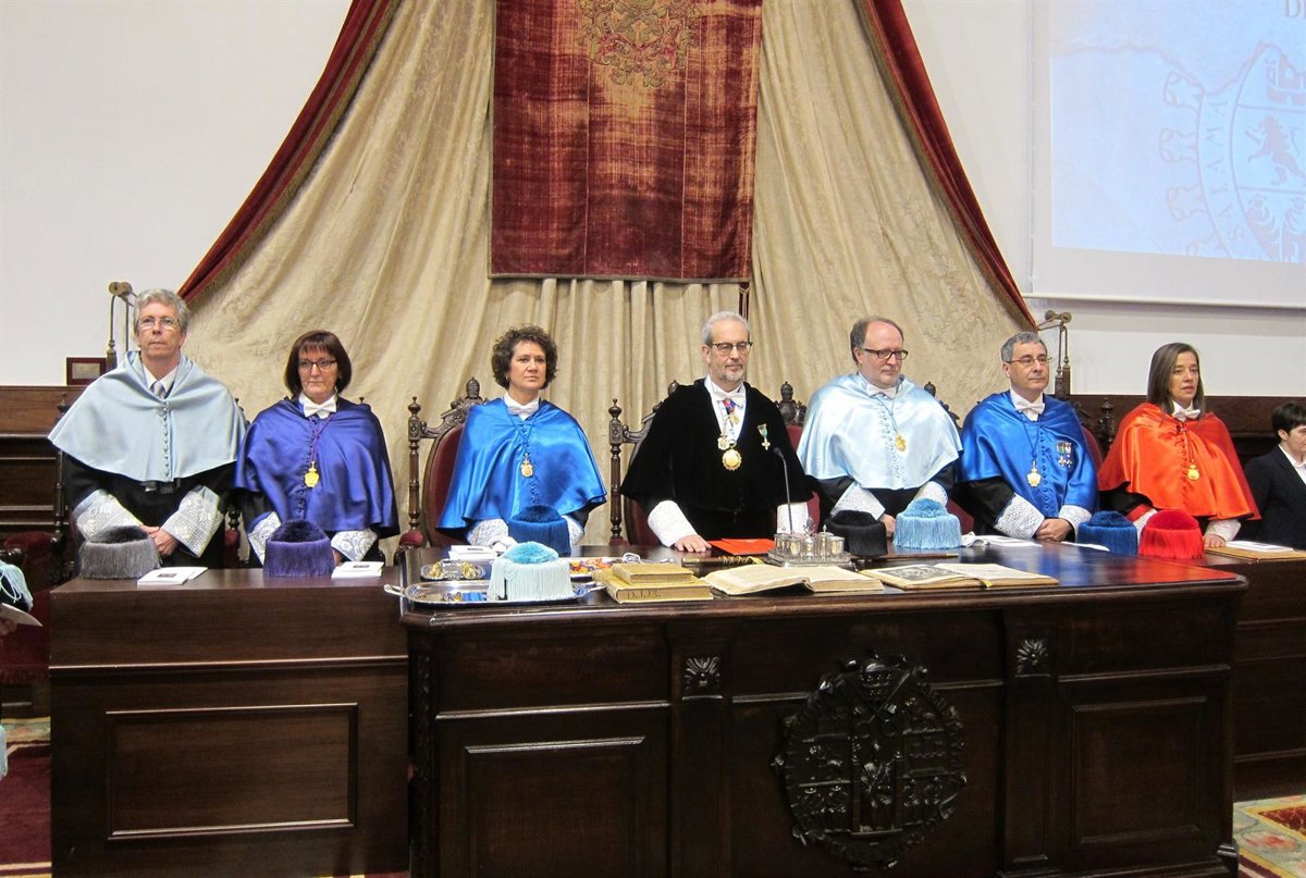 En el caso de la USAL, la sesión académica ha comenzado pasadas las 12.00 horas presidida por su rector, Daniel Hernández Ruipérez, y con la asistencia, entre otras autoridades, de la consejera de Cultura y Turismo de la Junta de Castilla y León, María Josefa García Cirac.