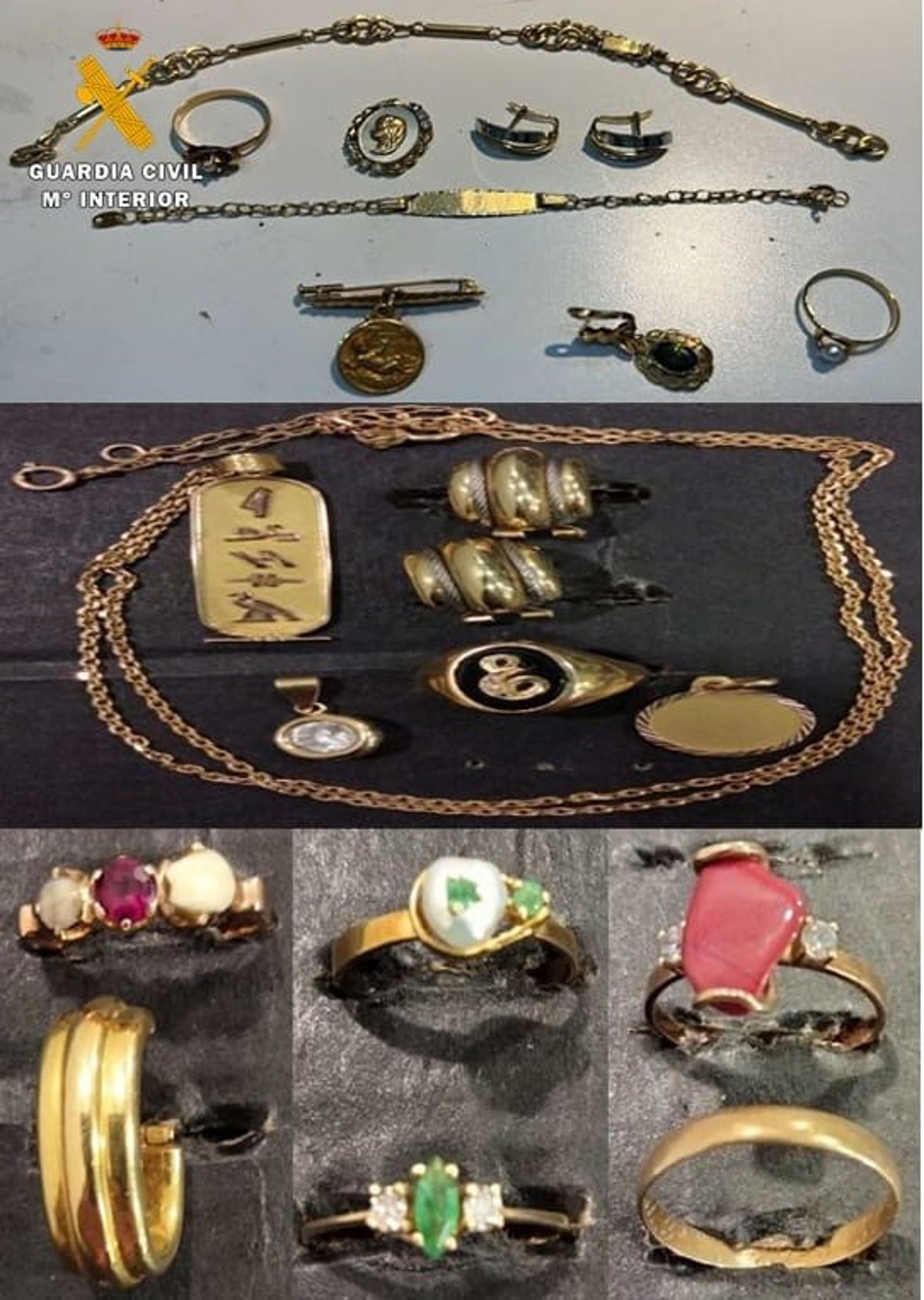 La Guardia Civil consiguió el reconocimiento de las joyas y objetos robados, procediendo a la recuperación de parte de los efectos sustraídos, que han sido entregados a sus propietarios.