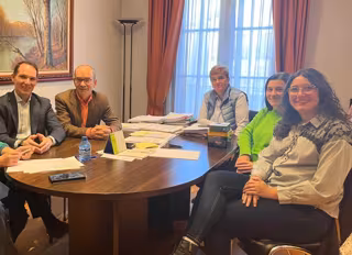 El alcalde de San Esteban de Gormaz, Daniel García Martínez, los coordinadores del proyecto, Belén Tomás, concejal, y Miguel Ibáñez y las representantes de la UVA María Pascual e Inés González de la Universidad de Valladolid, se han reunido en el consistorio sanestebeño para avanzar en el proyecto, según han informado desde el Ayuntamiento de la localidad.