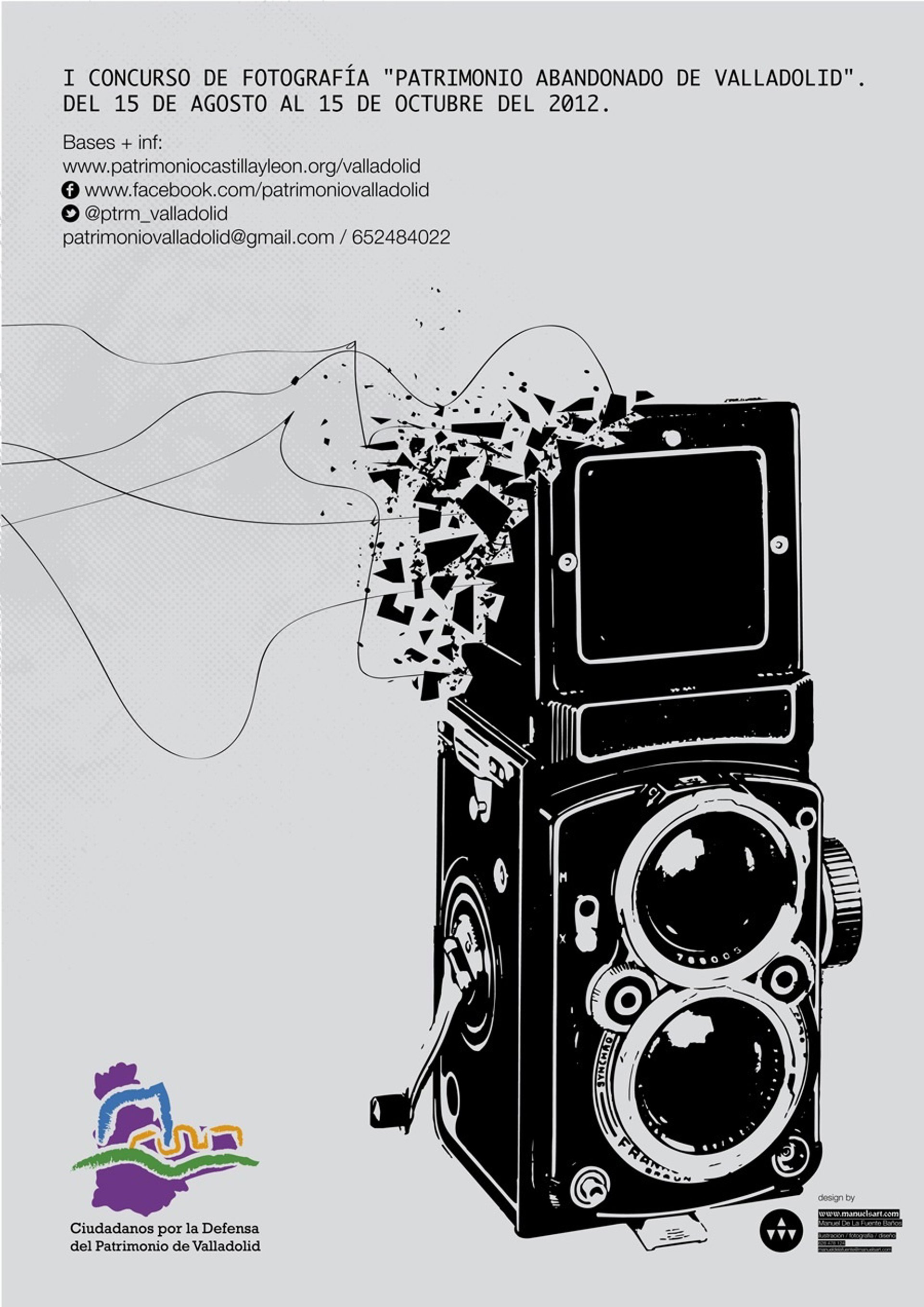 La Asociación Ciudadanos por la Defensa del Patrimonio de Valladolid organiza el I Concurso de Fotografía 'Patrimonio abandonado de Valladolid' desde el 15 de septiembre hasta el 15 de octubre, y además concederá dos premios de 300 y 150 euros junto a un diploma acreditativo.