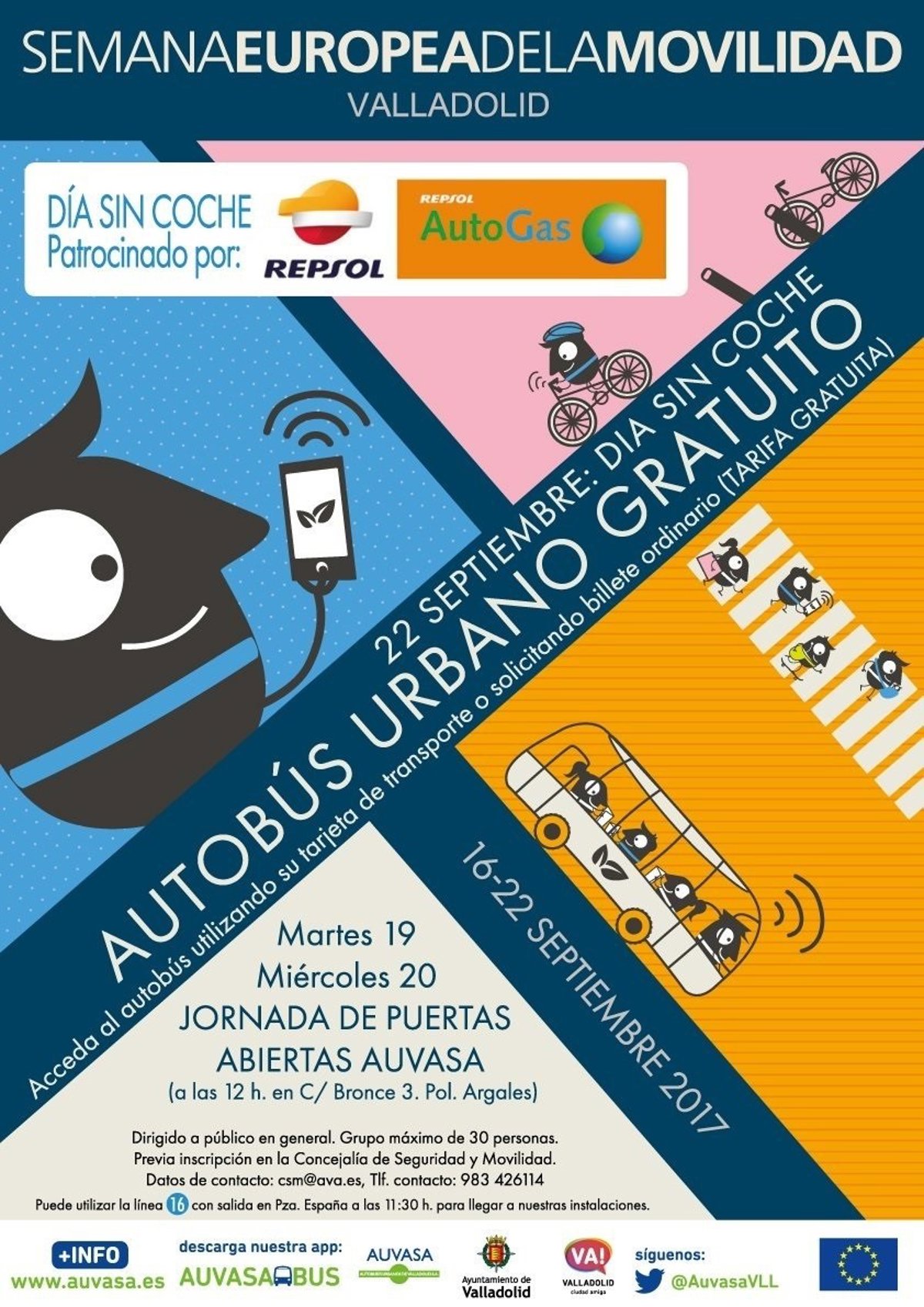 Además, se anuncia, con la colaboración de Repsol Autogas, la gratuidad de los autobuses urbanos de Auvasa durante la jornada del 22 de septiembre. Se podrá acceder a los transportes con la tarjeta de transporte o tras la solicitud del billete ordinario con tarifa gratuita.