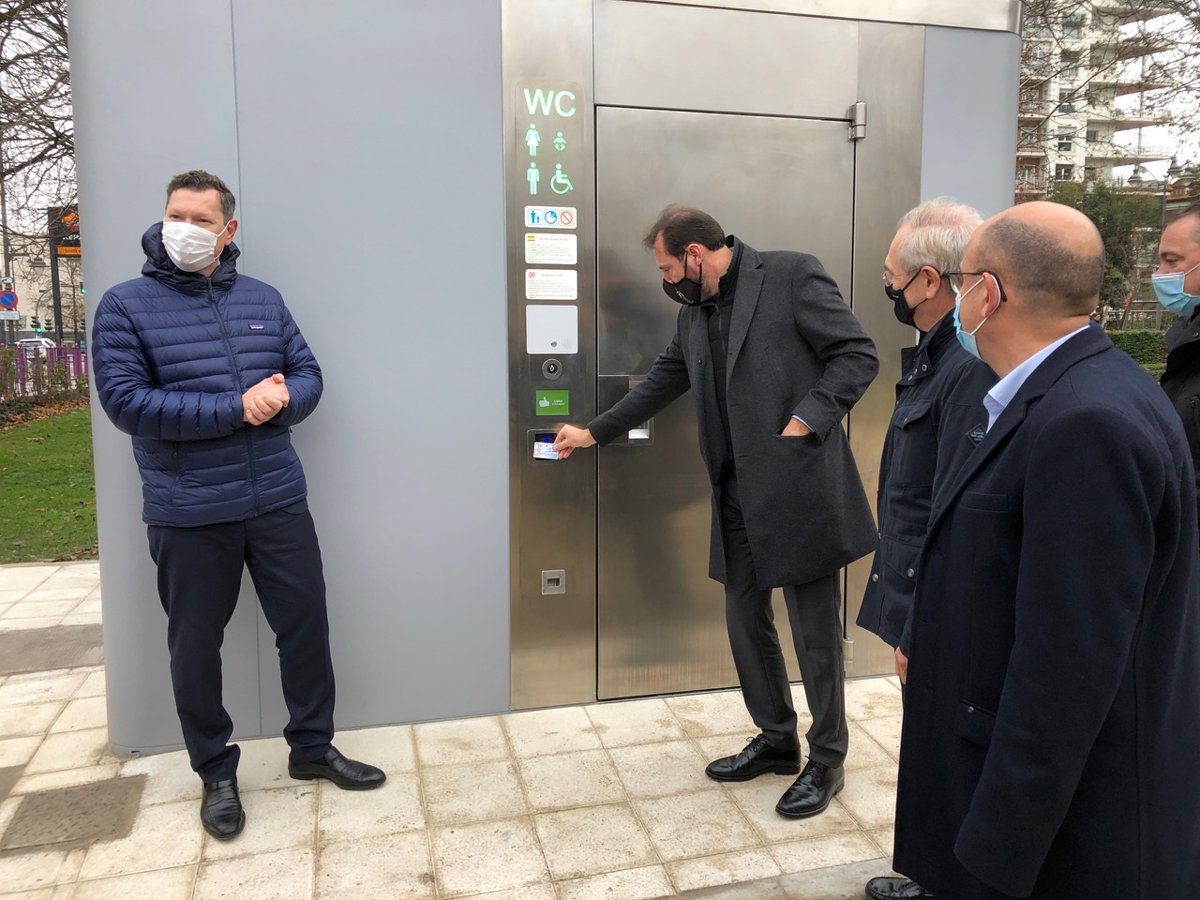 Estos aseos automáticos han sido presentado este lunes por el alcalde, Óscar Puente; el concejal de Movilidad, Luis Vélez; el concejal de Planificación, Pedro Herrero, y los responsables de la nueva empresa adjudicataria, Alexandre Roubaud, consejero delegado Sur de Europa y Latino América del Grupo JCDecaux, y Carlos Barón, director general de JCDecaux España.
