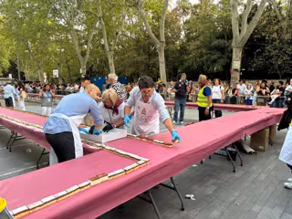 Valladolid ha batido un nuevo récord mundial este domingo al elaborar la tarta de San Lorenzo más larga del mundo, con un total de 325 metros y 4.500 raciones, lo que ha superado la marca establecida el 25 de mayo en Malasia con 221,63 metros y 4.399 raciones.