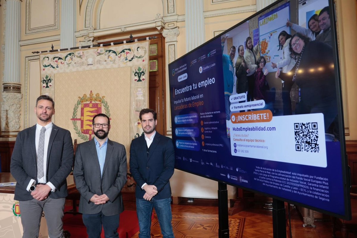 El concejal de Personas Mayores, Familia y Servicios Sociales del Ayuntamiento de Valladolid, Rodrigo Nieto, ha presentado junto al director general de la Fundación Santa María la Real, Álvaro Retortillo, y el gerente del Servicio Público de Empleo de Castilla y León (ECYL), Jesús Blanco, las dos nuevas Lanzaderas de Empleo que se pondrán en marcha en la ciudad este mismo mes de enero, dentro del programa 'Hubs de Activación de la Empleabilidad'.
