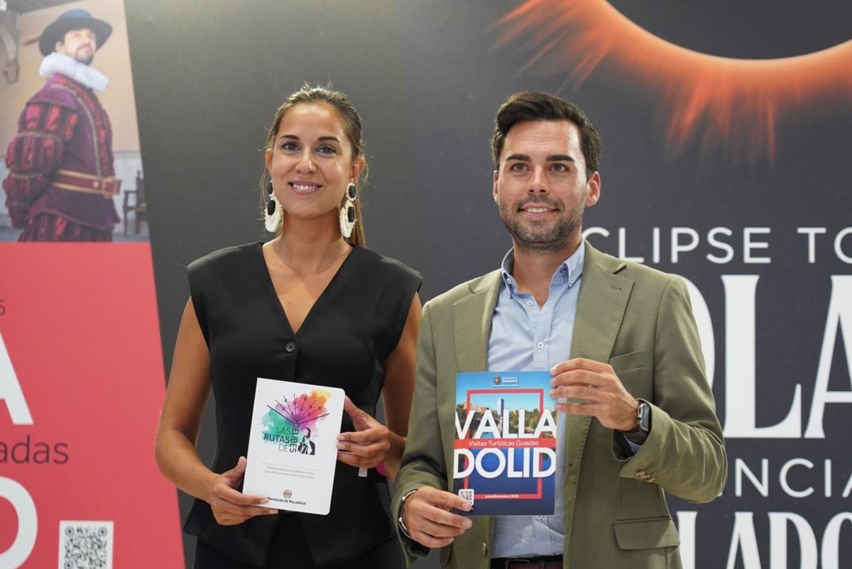 La concejala de Turismo, Eventos y Marca Ciudad, Blanca Jiménez, acompañada por el diputado de Empleo, Desarrollo Económico y Reto Demográfico, Roberto Migallón, durante la presentación del expositor del Ayuntamiento y la Diputación - AYUNTAMIENTO DE VALLADOLID