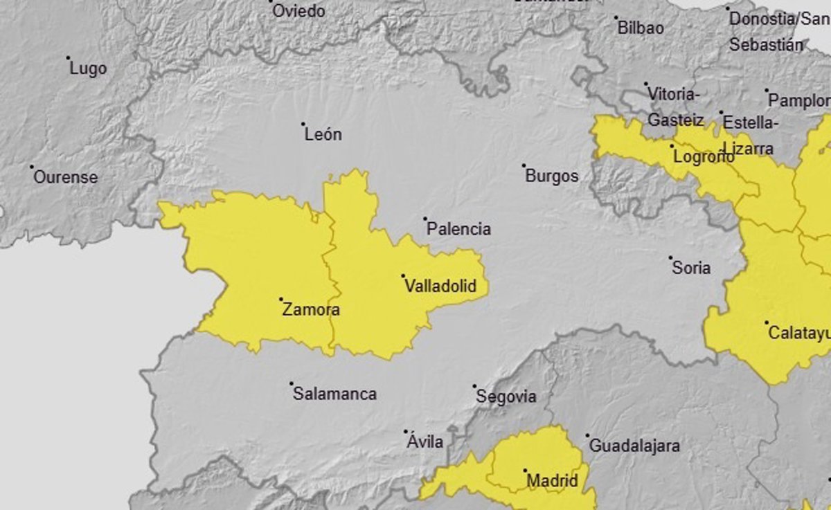 En concreto, la Meseta de ambas provincias tendrán activo este aviso entre las 13.00 y 20.59 horas de este jueves por altas temperaturas, si bien se espera que se superen umbrales en la mitad oriental de la zona.