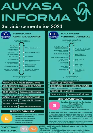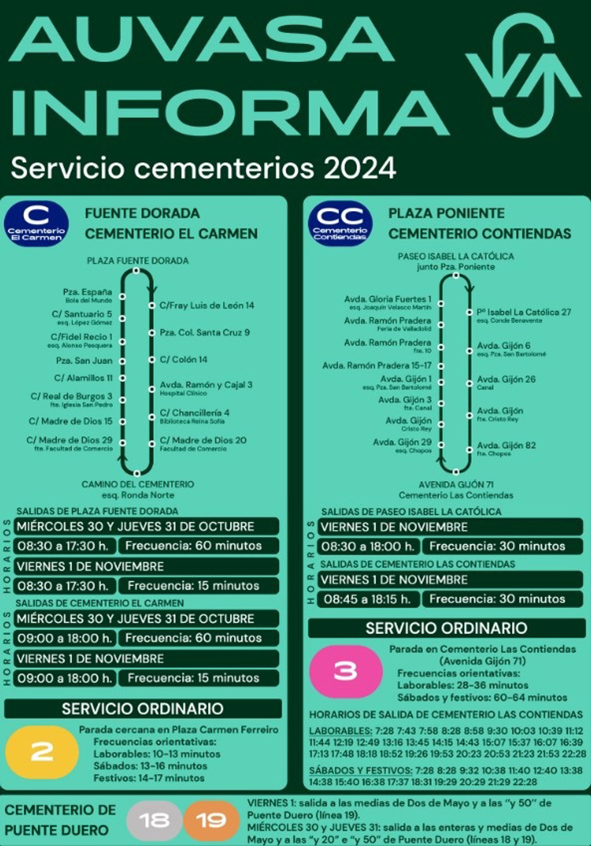 Además, Auvasa ha recordado que para conectar con este camposanto se puede contar con la Línea 2, con parada más cercana en la Plaza de Carmen Ferreiro (San Pedro Regalado).