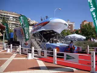 El emulador, patrocinado por El Corte Inglés, acerca a los no iniciados a las sensaciones que viven los pilotos a los mandos de una aeronave, que se consiguen mediante la proyección de una filmación de gran impacto visual, a la que se asocia el movimiento de la propia cápsula. Los pasajeros disponen de asientos diseñados ergonómicamente que proporcionan una vista de la pantalla sin obstáculos.