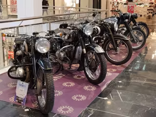 La muestra está compuesta por más de 30 motos repartidas por la planta baja y primera del centro comercial vallisoletano, desde la icónica Terrot 250 del año 1928, una Guzzi Alce 500 de 1936, una BMW R 75 del 1938, míticas Vespas con Sidecar de 1956, hasta una Ducati HBBD del año 1963, entre otras reliquias.