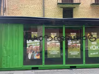 Vandalizan la caseta de campaña de las elecciones europeas del 9 de junio que Vox ha desplegado en la céntrica calle de Santiago de Valladolid con el mensaje 'Putos Corruptos', lo cual ha sido definido por el partido como un "ataque que busca hacer daño".