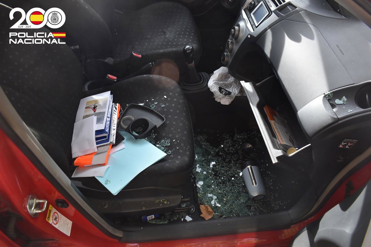Efectivos de la Policía Nacional han identificado a dos varones, a uno de los cuales se ha detenido mientras el otro está en busca y captura, por robar en el interior de 22 vehículos y sustraer uno de ellos al que cambiaron las placas de matrícula para utilizarlo.