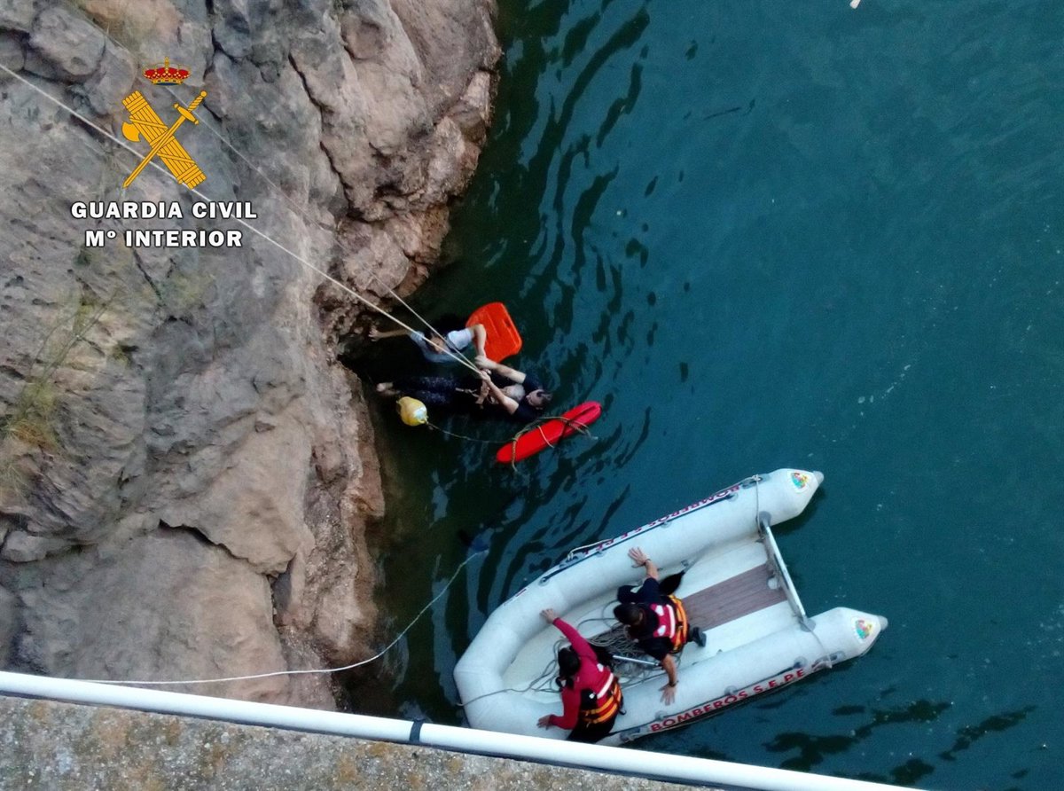 Desde la central se movilizó a la patrulla más cercana al lugar del suceso, cuyos componentes comprobaron la presencia en el agua de dos mujeres, una de ellas de avanzada edad, que al parecer había caído desde la cornisa de la presa, con un desnivel sobre el agua de unos 15 metros y otra que se había lanzado al agua para tratar de auxiliarla.