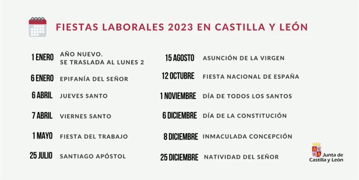 Calendario laboral para 2023 elaborado por la Junta de Castilla y León - JCYL