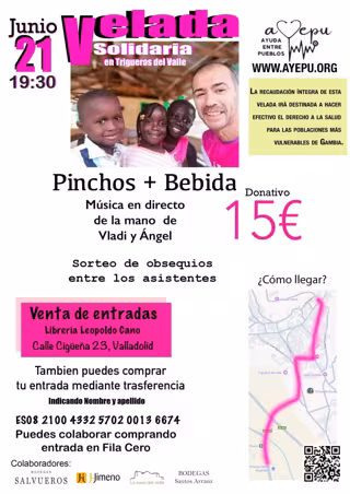 La asociación sin ánimo de lucro Ayepu organiza el próximo 21 de junio una velada solidaria con música en vivo en Trigueros del Valle (Valladolid) para buscar apoyos que permitan desarrollar sus proyectos de ayuda sanitaria en Gambia, donde tiene previsto salvar la vida a una niña de seis años con una cardiopatía congénita mortal, para lo que precisa una operación urgente.