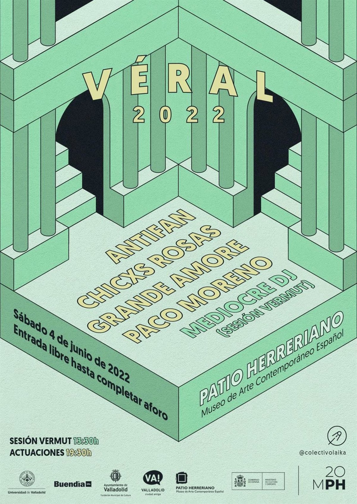 El festival Véral 2022 se celebrará este sábado, 4 de junio, en el Museo Patio Herreriano, como inicio a las celebraciones del 20 aniversario del Museo, con las actuaciones de Mediocre DJ, ANTIFAN, Chicxs Rosas, Grande Amore y Paco Moreno.