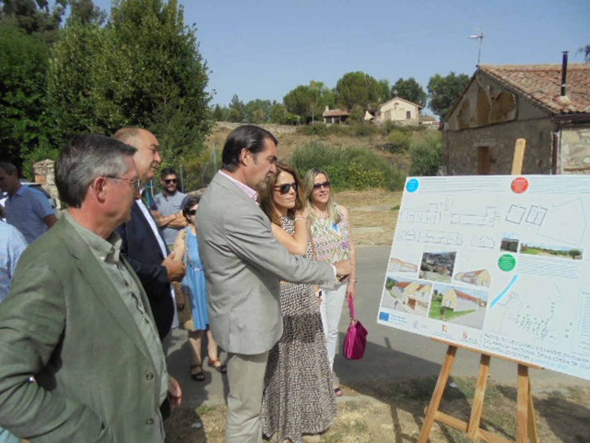 El consejero Suárez-Quiñones con el presidente de la Diputación, De Vicente, el director general de Medio Natural, Arranz y la alcaldesa De Navafría, Jennifer Berzal, comentan el proyecto ante el viejo edificio donde estará ubicada la nueva instalació - EUROPA PRESS