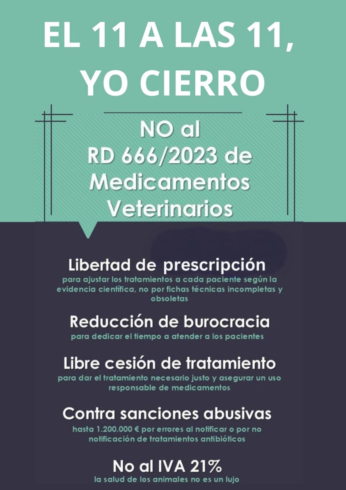 Asimismo, ha pedido la Derogación del Real Decreto 666/2023 ya que, a su juicio, la normativa "debe adaptarse a la legislación europea y a las necesidades reales de la salud animal y pública", así como la reducción del IVA en los servicios veterinarios, "para garantizar una atención asequible y justa".
