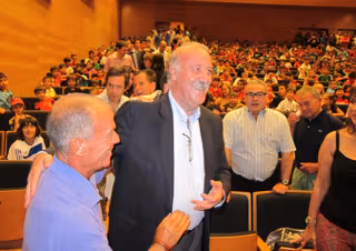 Del Bosque ha acudido al Teatro de Caja España-Duero en Salamanca, donde estaban todos los participantes esperando las palabras del seleccionador. Allí les ha contado algunas de las vivencias al frente de "La Roja" y ha respondido a sus preguntas.