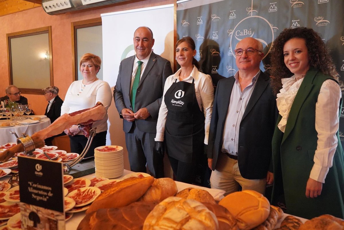 Así, durante el acto celebrado hoy, los invitados han podido disfrutar, en primer lugar, de una cata de jamón de Embutidos Mariano Pascual, cortado por la propietaria de Charcutería Selecta Natalia, con panes de la Panadería Los Mellizos y cerveza de La Granja de Goose. Acto seguido, ha sido servido un Menú consistente en ensalada de cordero escabechado con vinagreta de lentejas y croquetas de queso, de primero; morcillo de cabú con chorizo y espirulina, acompañado de puerro en dos texturas, de segundo; y mousse de chocolate sobe yogur de mandarina, de postre.