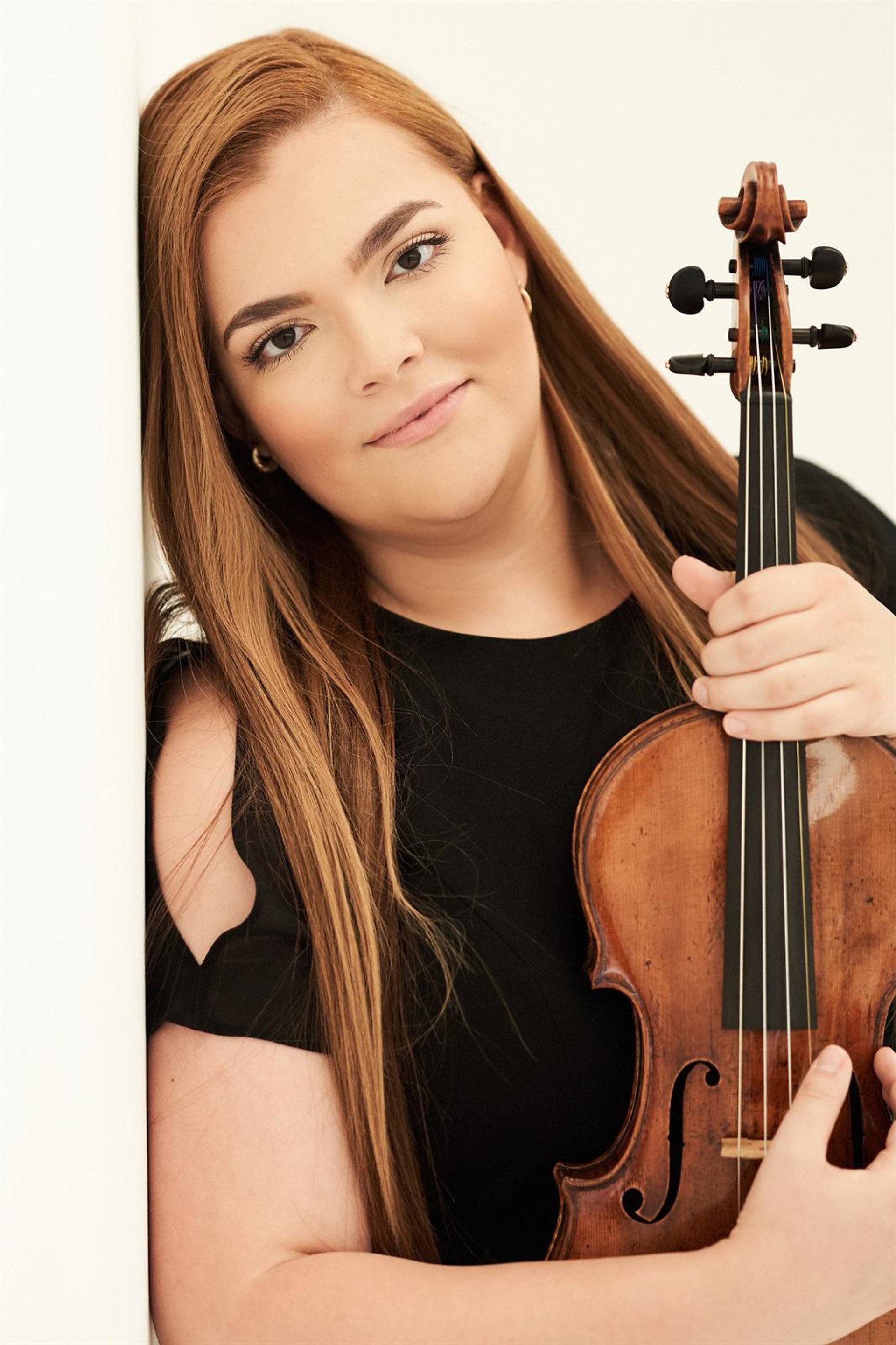 Ellinor D'Melon toca un violín de Giovanni Baptista Guadagnini de 1743 gracias a un amable préstamo de un donante anónimo de Londres.