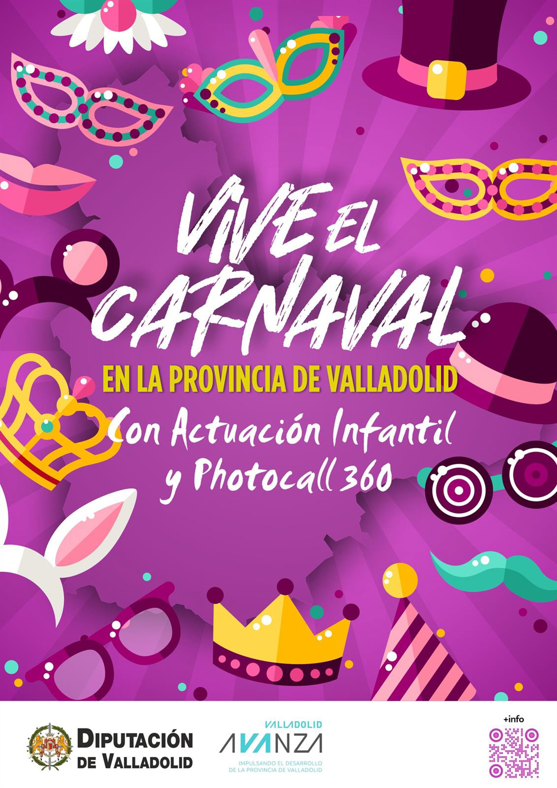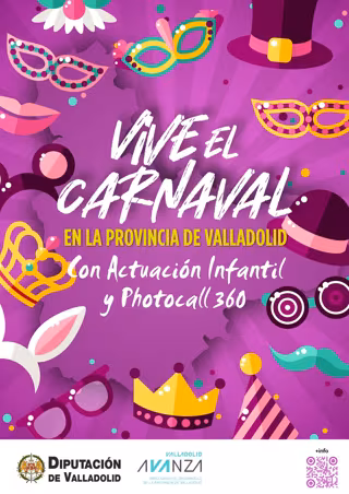 La Diputación de Valladolid organiza, a partir de este viernes, día 9 de febrero, el programa 'Vive el Carnaval' en la provincia de Valladolid que llevará a varios municipios de la provincia actuaciones infantiles y un photocall 360 para celebrar el carnaval.
