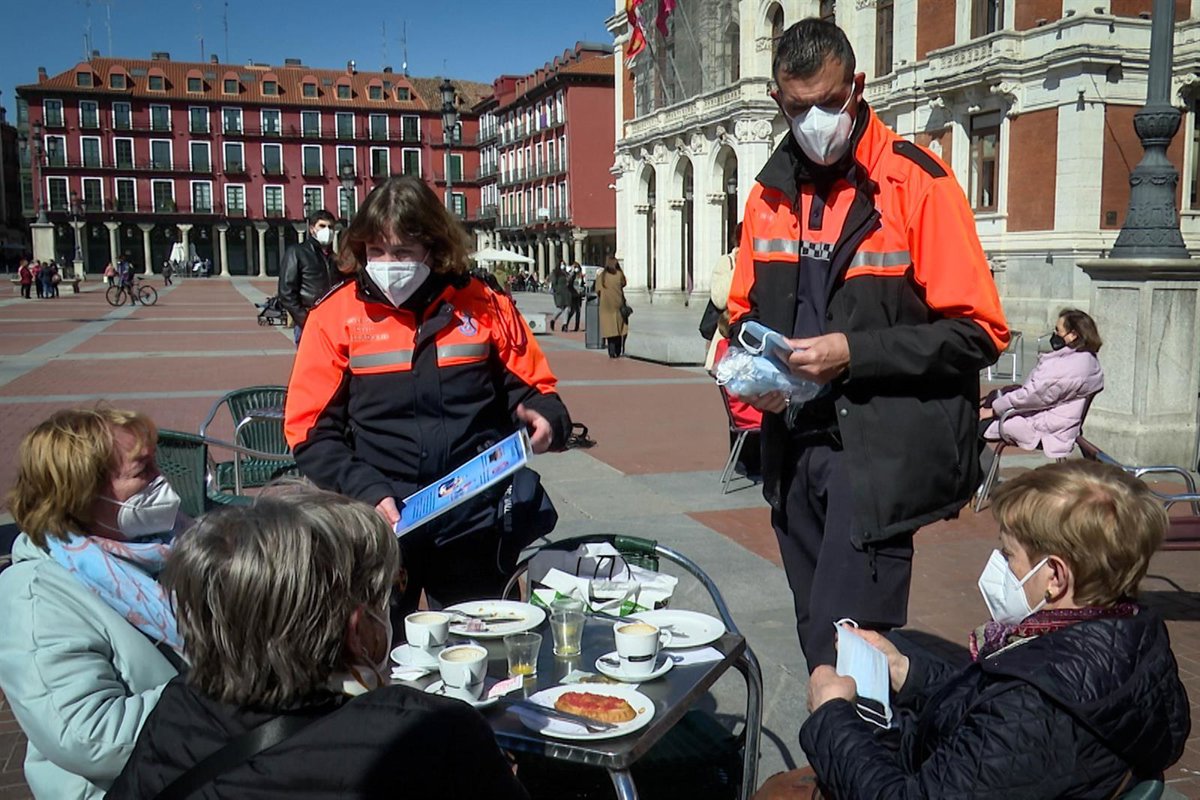 En el caso de la Asociación de Protección Civil de Valladolid habrá 16 voluntarios implicados en estos equipos, que este mismo viernes han comenzado a hacer su labor en las terrazas de la Plaza Mayor.