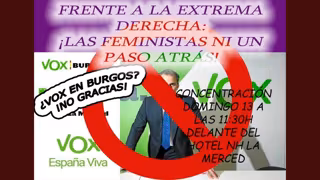 Esta reacción de VOX se produce después de que la concejal de Imagina Burgos haya compartido a través de su perfil en Twitter una convocatoria para una concentración media hora antes del inicio del acto del partido bajo el lema '¿VOX en Burgos? ¡No gracias!', junto a un mensaje en el que Antea Izquierdo anima a concentrarse con un mensaje en el que se lee 'Ni un paso atrás, frente a la extrema derecha seguimos luchando'.