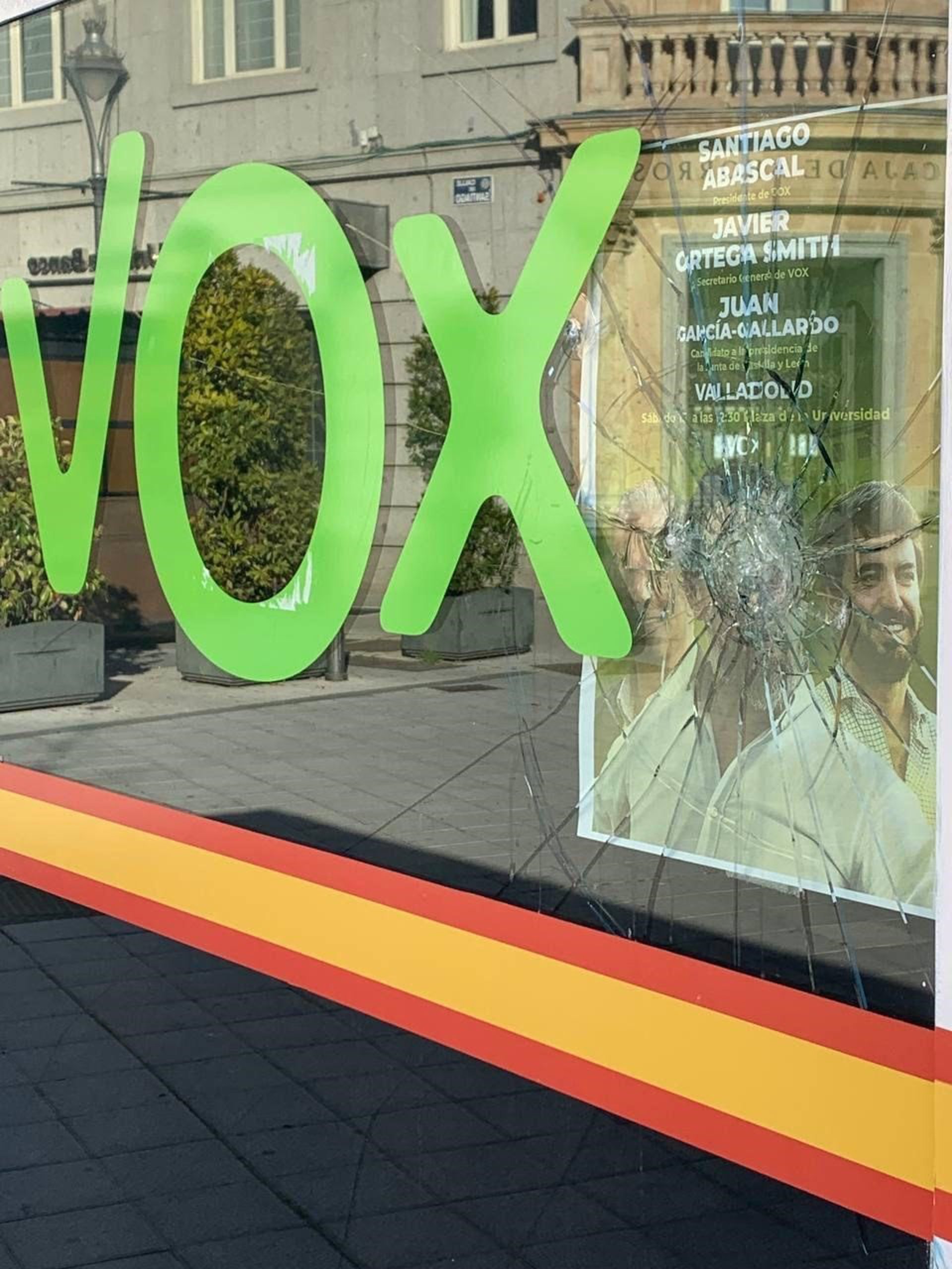 La sede de campaña de la formación política VOX en Valladolid ha amenecido este domingo, "por segundo día consecutivo", dañada por diferenes actos de "vandalismo" como pintadas y roturas de cristales en su sede de la calle Santiago de la capital.