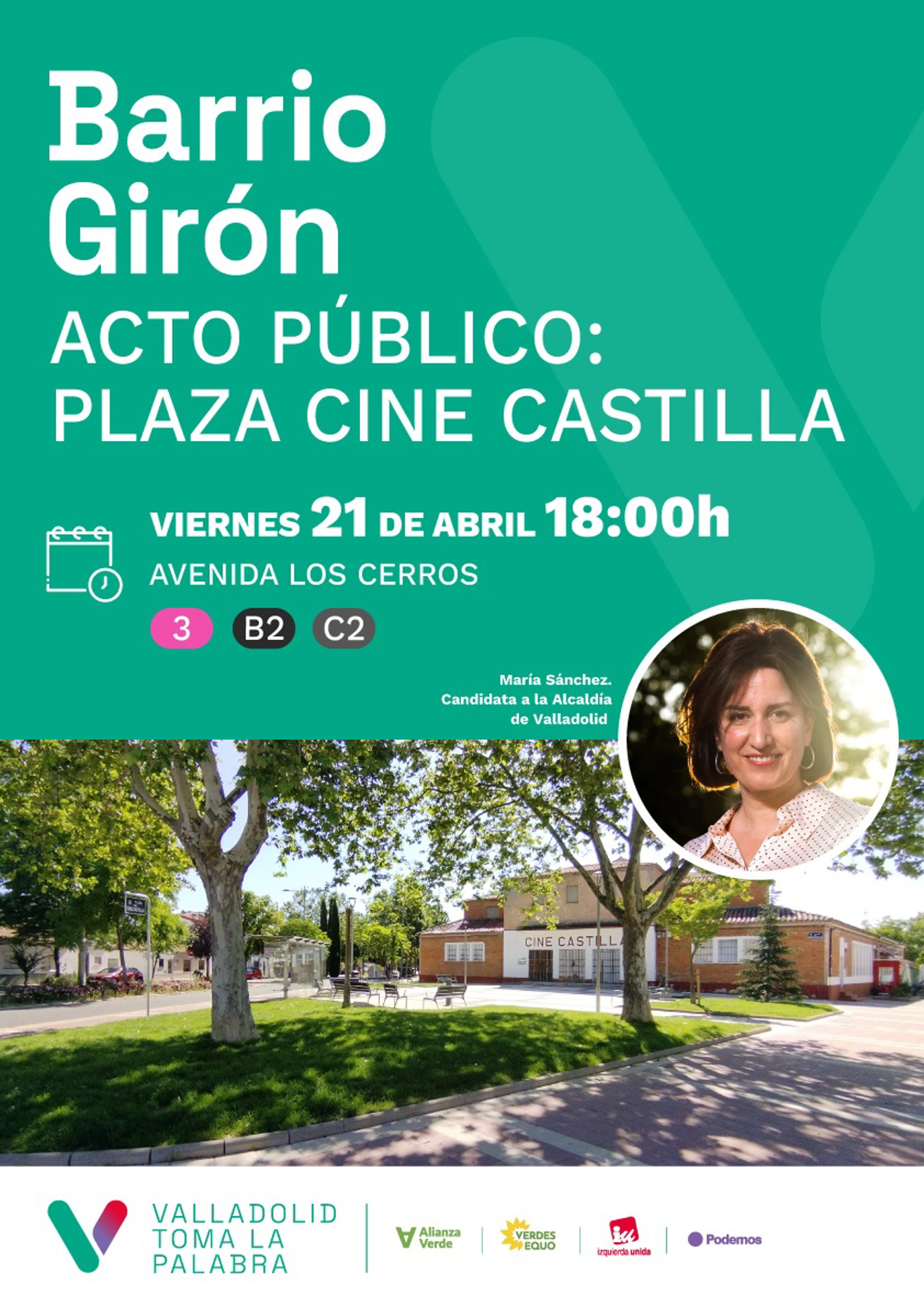 La candidatura de Valladolid Toma la Palabra a las elecciones municipales al Ayuntamiento de Valladolid se ha comprometido a definir el plan de uso y explotación como espacio cultural del Cine Castilla, situado en el barrio de Girón, cuya cesión, solicitada por el Ayuntamiento a la Junta de Castilla y León, está "a punto" de cerrarse.